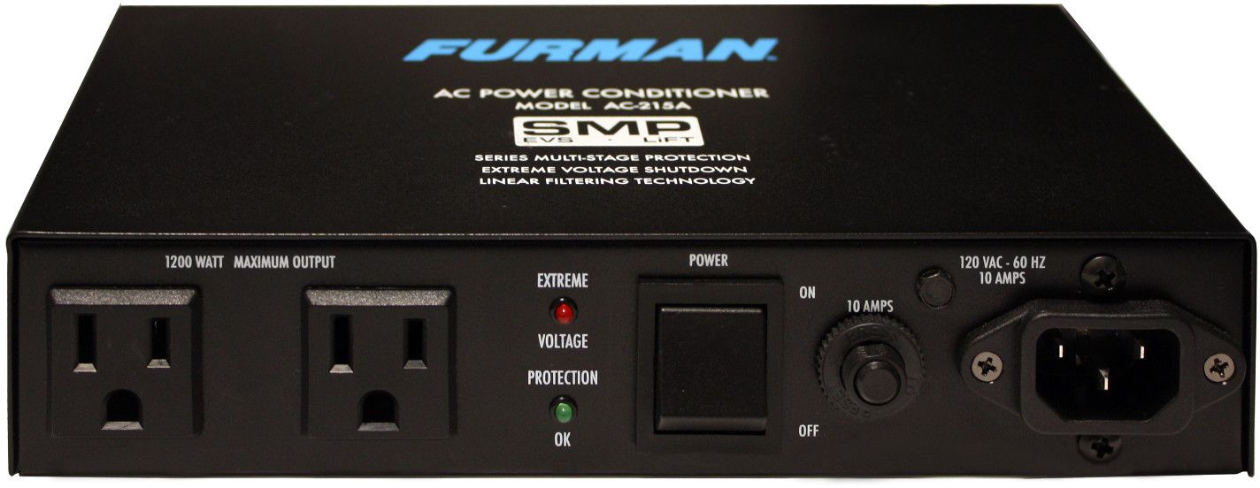 The AC-215A compact power conditioner features Furman’s revolutionary SMP technology. Furman’s Series Multi-Stage Protection (SMP) circuit features our exclusive Linear Filter Technology (LiFT) and Extreme Voltage Shutdown (EVS). Together, these technologies comprise what is, without question, the world’s most advanced and comprehensive transient voltage surge suppressor.Read More