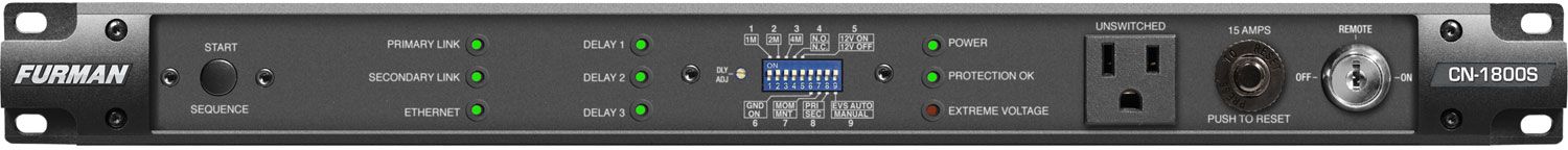 The new CN-1800S is one of the first products to feature Furman’s SmartSequencing™ technology, which allows large and complex A/V systems to be safely powered on and off with a simple press of a button or turn of a key, even by nontechnical personnel. SmartSequencing’s bidirectional communications between installed units enables a primary unit to control and sequence multiple secondary units, ensuring multizone electronic systems are powered on and off safely and dependably from a single control point across an entire installation. Units can be connected via current loop at runs of more than 1,000 feet with backwards compatibility with Furman’s legacy sequencers.