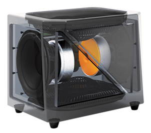 Housed within the gorgeous piano gloss black enclosure are two horizontally-opposed 12? ultra-long-throw active drivers and two vertically-opposed 15? x 13? planar infrasonic radiators, driven by a 1600 watt Class D Digital amplifier. This dual-plane, patented* dynamic inertial-balancing preserves and focuses all the energy produced by the transducers in order to more effectively move the air in the room, rather than wasting energy moving the box. It also enables you to hear all the fine subtle details in your recordings. The benefit is a new achievement in state-of-the-art subwoofer performance that, not only “rocks the house”, as Big Picture Big Sound’s Chris Boylan raved, but is also, “strong, pure and controlled” as Sound&Vision magazine’s Mark Fleischman wrote. With two active drivers separated horizontally in space, as well as two passive radiators separated vertically, the driver to-room coupling is distributed much more smoothly, for in-room bass performance that can’t typically be achieved with a single subwoofer.