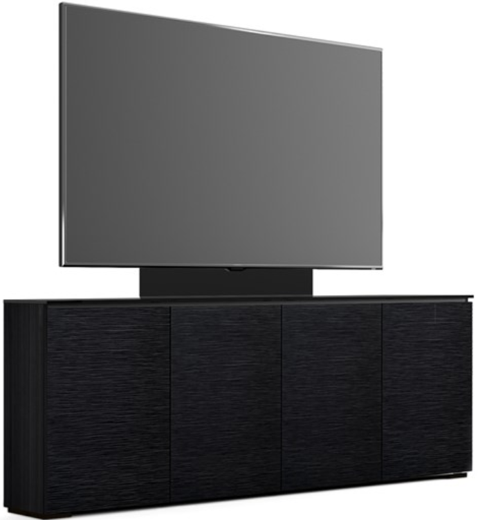 Black Oak finish with Tall Grass Texture & Black Glass top. Features infinitely adjustable, black interior shelves, and Built-in ventilation louvers for better air flow to keep equipment cool.