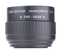 The Cine-Digitar 1.33x lens is used to create widescreen images with digital projectors, without letterboxing. This allows the use of all the projectors resolution and brightness. 1.33x anamorphics can be used to create 2.35 (Cinemascope®) aspect ratio images with 16x9 projectors.